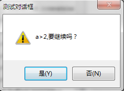 b:=rdo2 MessageBox('a>2,要继续吗?','测试对话框',c);