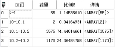 按字段大小进行汇总。小于最小值Lowvalue为一组,从最小值Lowvalue到最大值HighValue中间每步长SepValue为一组,大于最大值High为一组。