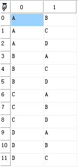 范例03:返回数组Array(('A','B'),('C', 'D'))中任意两个数据的排列组合