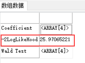 -2LogLikeHood:模型检验,-2对数似然值。-2对数似然值是正数,用来描述模型对因变量的预测能力。数值越大,预测越差。计算公式: -2LogLikeHood=-2lnLθ=i=1n[yiα+k=1Kβkxki-ln?(1+eα+k=1Kβkxki)] Wald Test:对每个变量的显著性检验, 其中,Wald-Stat:Wald统计量 Z-Stat:Wald统计量的平方根 P-Value:卡方检验p值,即接受零假设的临界值 Hypothesis:是否通过检验,0或1 |