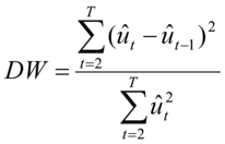 德宾-沃森检验:检验随机误差项是否存在一阶自相关。结果返回DW统计量