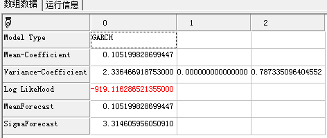 广义自回归条件异方差模型,包含四种模型:GARCH(1,1)、GJR(1,1)、IGARCH(1,1)和EGARCH(1,1),本模型采用了最大似然估计法去估计模型的系数,可做一步预测。