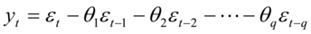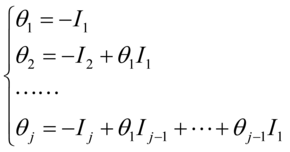 其中:yt为原序列零均值化的新序列,μ为原序列的均值,θq为移动平均系数,εt是零均值,方差为σ2的平稳白噪声