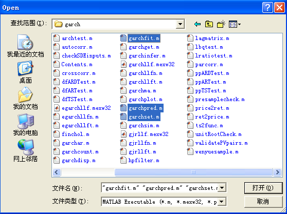 以下范例为加入garchfit,garchpred,garchset,norminv等MATLAB方法