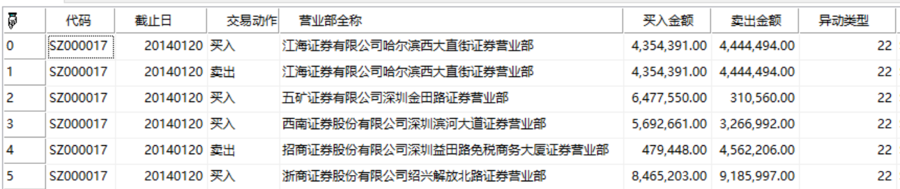 //指定时间段所有数据Ret:=GetPublicTradingInformation(array(),inttodate(20140120),inttodate(20140124),array(),array(),array(),array(),t);