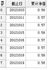//取华安创新2012年10月10日到2012年10月19日之间的累计净值