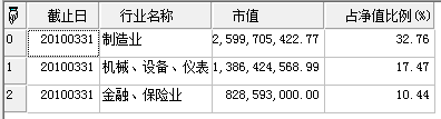 //返回华安创新2010年一季报前3名行业详情,结果如下图所示。
