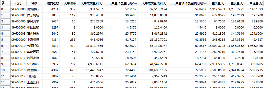 根据参数不同的取值获得成交明细个数,若大于等于大单频率,获取成交明细数据的统计