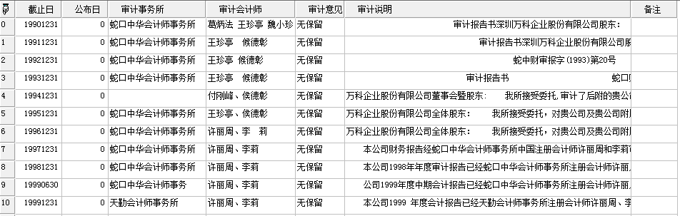 //返回万科的报表审计