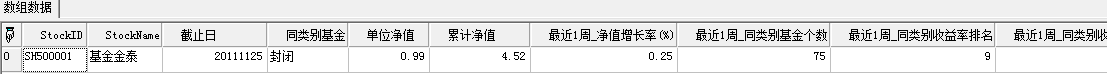//返回”SH500001”在截止日2011年11月30号的收益率