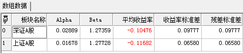 | 返回 | Array | 数据表,返回不同组合的贝塔值与风险,从而对不同组合间的贝塔值与风险比较。 |