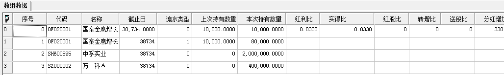 ("组合编号":59,"代码":"OF020001","本次持有数量":100,"截止日":38734.00,"成交量":-70000.00,"成交价":13.8876,"成交金额":972132.00,"总成本":1000,"乘数":1,"动作":1,"成交时间":40369.9642),