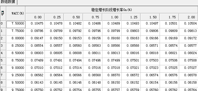 return EV_FCFF_II_Sensitivity(data,10121,2,785600,0,2,7.5,12);