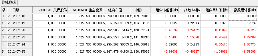 | 返回 | TableArray | 对已经建立好的投资组合进行跟踪,返回投资组合的组合市值,涨幅等。 |