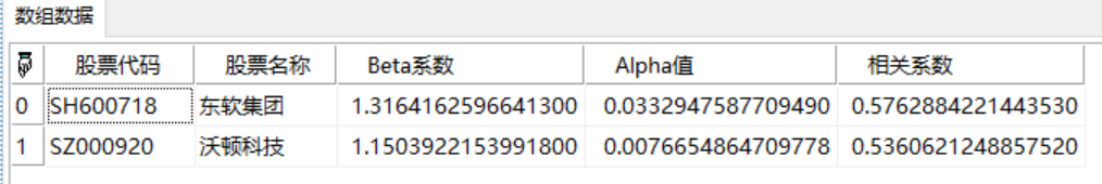 | 返回 | TableArray | 股票与指数的Beta,Alpha以及相关系数 |
