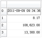 //返回万科A在20110909日第100条交易记录的时间、价格、成交金额和成交量。