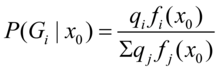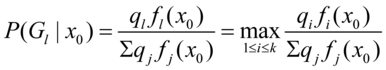 发生时,求他属于某类的概率。由贝叶斯公式计算后验概率,有:
