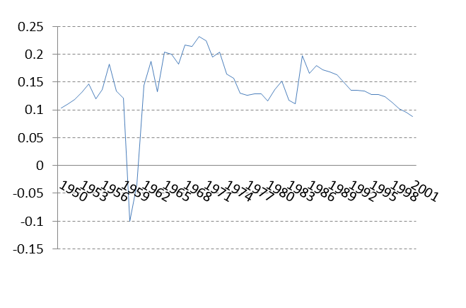 经检验我们可以做到pop是非平稳时间序列,而dpop是平稳时间序列,知道了这个,
