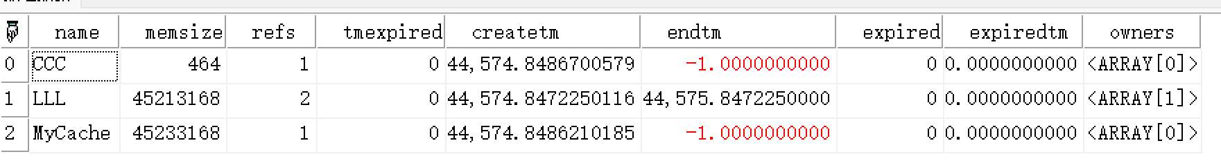 列出现存的全局缓存信息, 需要高级权限HighLevel 2或者系统权限。
