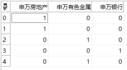 | 返回 | Array | 二维数组,返回根据指定分类变量生成的虚拟变量/指示变量(dummy/indicator)虚设变量/名义变量/哑变量,也有称之为one_hot编码,离散特征值二值化 |