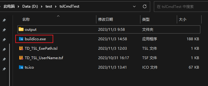 输入:tsl --buildexe=TD_TSL_ExePath.tsl --output=buildico.exe --buildico=ts.ico