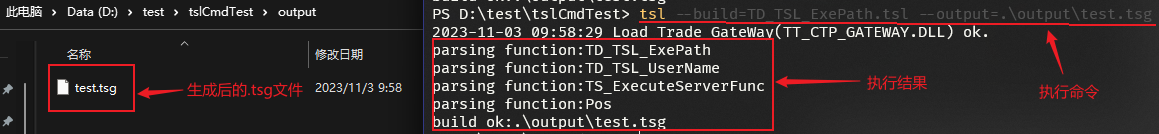 输入:tsl --build=TD_TSL_ExePath.tsl --output=.\output\test.tsg