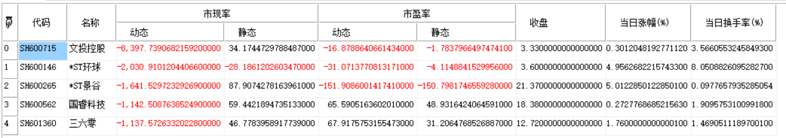 | 返回 | Array | 数组类型,返回指定板块指定日指定字段排名的市现率数据 |