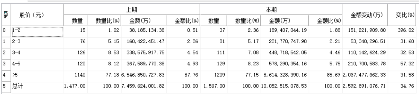 | 返回 | Array | 数组类型,返回指定板块一段时间以来市值在不同证券品种间的股价及同比 |
