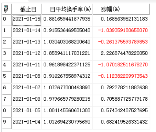Return BkHslAnalysis_ZB("上证A股",20210101T,20210115T,0,0,cy_Day());
