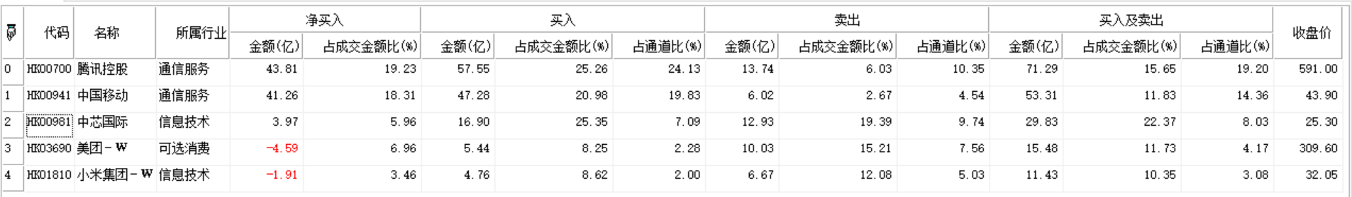 //返回港股通(沪)在指定日20210111的前5大活跃股情况