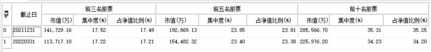 | 返回 | Array | 数组类型,返回指定基金最近N个报告期的持股集中度数据。 |