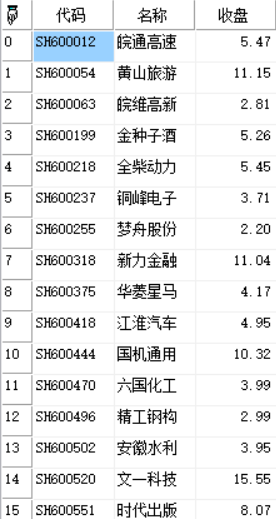 数组类型教学函数。对板块Bkname下证券代码遍历,获得每个证券当前时间的收盘价。