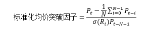 标准化均价突破因子,当前价格与过去N日的均价差值,再对回看期内的波动率进行标准化,与系统证券、时间、周期相关