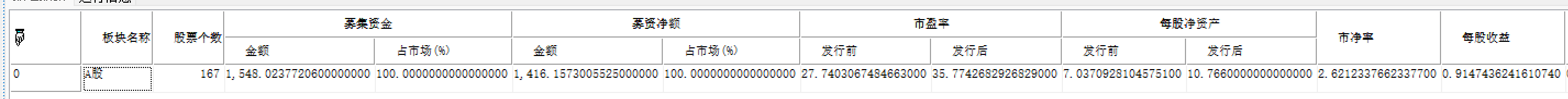 | 返回 | Array | 数组,指定板块从开始日期到截止日期的汇总发行上市基本信息。 |