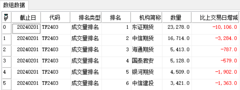 return FuturesMTPGetData('TF2403',20240201T,'成交量排名');