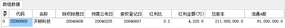| 返回 | Array | 数组。股票列表报告期分红送配股情况。 |