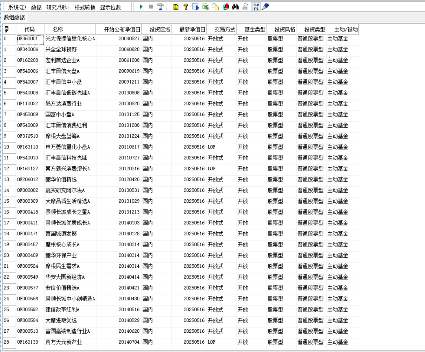 | 返回 | array | array,筛选后的基金表 |
