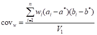 WeightedPopnCov(a:Array; b:Array ;w:Array):real
