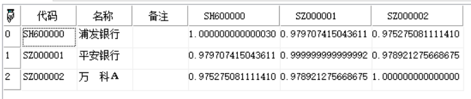 二维数组类型,价格趋势相似性矩阵
