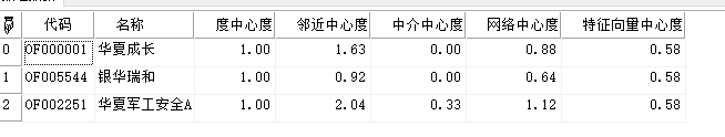 ("代码":"OF000001","名称":"华夏成长","备注":NIL,"OF000001":0.0,"OF005544":5.1043,"OF002251":19.3619),