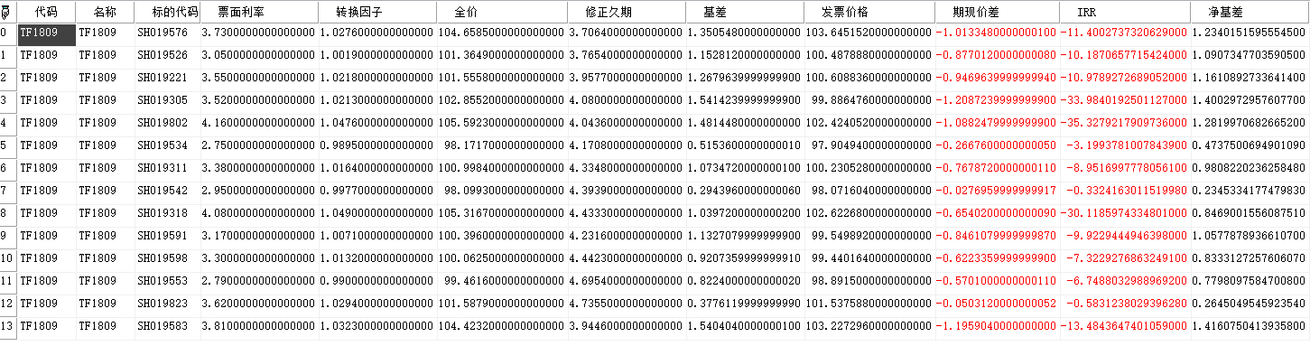 //获得TF1809在20180913对应的IRR所有的指标信息数据