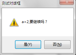 b:=rdo2 MessageBox('a>2,要继续吗?','测试对话框',c);