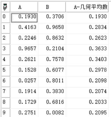 arr[:,"A-几何平均数"]:=GeoMean(arr,0,ml,"A");