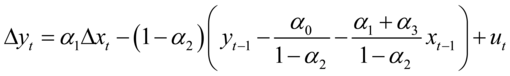 ECM项为负,结果表明上证指数与深证综指存在长期稳定的协整关系,可在短期内保持均衡