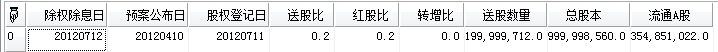 //取'昊华能源'在2011年年报的报告期送股情况;