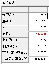 特雷诺(%)、詹森(%)、β、选股(%)、上涨择时(%)、下跌择时(%)、VAR@标准正态法(%)、VAR@历史模拟法(%)