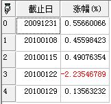 | 返回 | Array | 二维数组(第一列为日期,第二列为涨幅) |