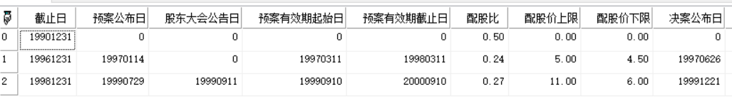 //返回万科的配股表