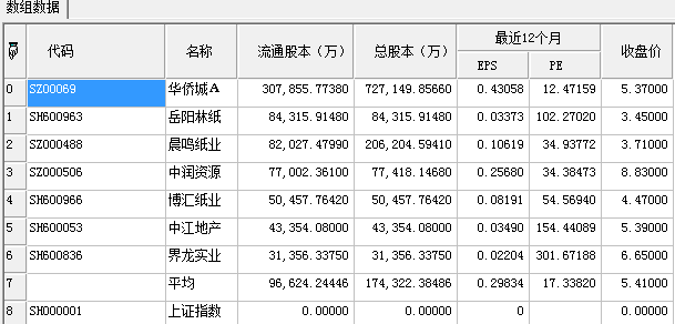 stocks:='SH600053;SH600836;SH600963;SH600966;SZ000488;SZ000506;SZ00069';