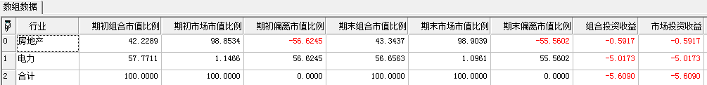 期初组合市值比例、期初市场市值比例、期初偏离市值比例、期末组合市值比例、期末市场市值比例、期末偏离市值比例、组合投资收益、市场投资收益、超额收益、行业配置超额收益、个股选择超额收益、双重配置超额收益、实际配置超额收益